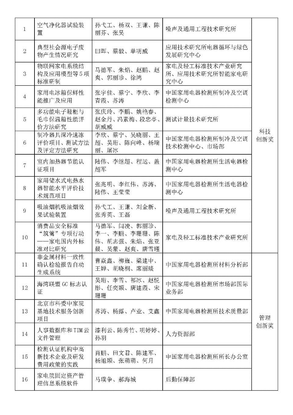 颁发2017年度中国家用电器研究院创新奖三等奖