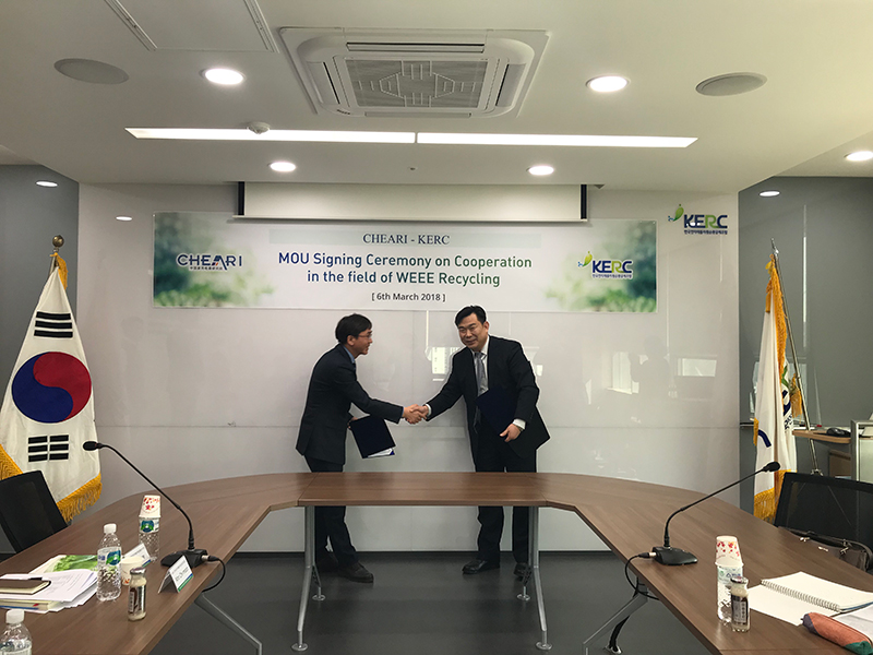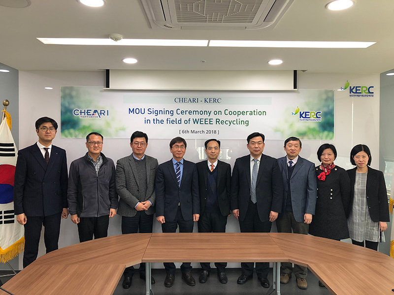 2017年3月6日,中国代表团与韩国电子产业回收利用合作社(KERC)在韩国水原市签订了合作备忘录,并针对电器电子产品EPR制度、实施细则及回收处理成果进行座谈。KERC的会长、执行主任、以及相关负责人参与了座谈。