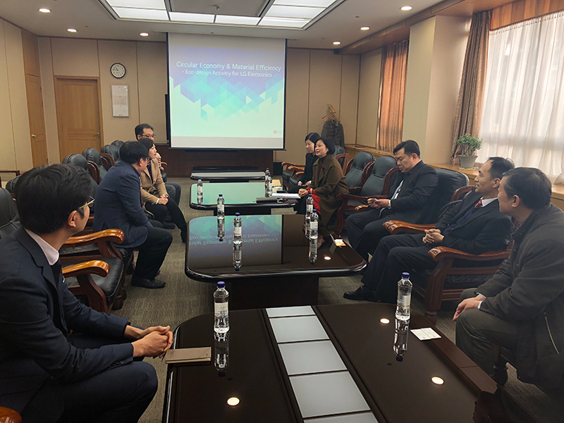 2018年3月6日下午,中国代表团一行来自位于水原市的三星电子总部,与三星电子进行EPR与绿色供应链企业实践交流。2018年3月7日上午,代表团与位于平泽市的LG电子总部针对EPR与绿色供应链企业实践进行交流。在回收处理方面,三星与LG在韩国均开展了以旧换新服务,均建有一个大家电处理中心,同时开展产品生态设计评价、使用再生材料、减少部件数量的设计等工作。