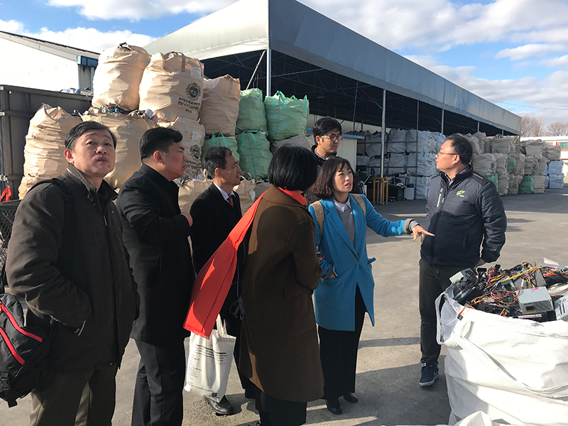 2018年3月5日下午,中国代表团一行参观了以小家电处理为主的首尔金属回收中心,首尔金属回收中心,简称SR中心,是由首尔政府于2009年建立,ECO-CITY公司负责运营的非盈利性机构,主要进行中小型废弃电器电子产品的回收处理。