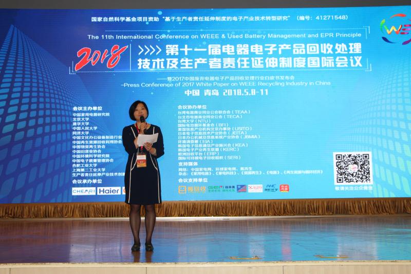 2018年5月9~11日,“第十一届电器电子产品回收处理技术及生产者责任延伸制度国际会议(2018)暨2017中国废弃电器电子产品回收处理行业白皮书发布会”在青岛黄海饭店成功召开。本届会议主题是绿色供应链实践与生产者责任延伸制度。会议由中国家用电器研究院联合北京大学、清华大学、中国人民大学、同济大学、中国文化办公设备制造行业协会、中国再生资源回收利用协会、中国物资再生协会、中国旧货业协会、中国电子质量管理协会、中国环境科学研究院、合肥工业大学、上海第二工业大学联合主办。