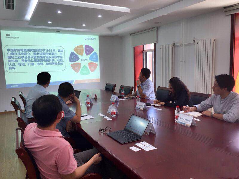 首先石文鹏部长表达了对Hyejung CHO副总裁一行到访的热烈欢迎,并表示目前中国十分重视智能技术的发展,对于家电行业,智能早已成为家电产品的主要发展方向之一。而我院作为家电行业公共技术服务平台,应努力在关键共性技术、服务企业等方面取得更大的突破。其次,汪超副部长就我院的基本概况、智能家电标准、验证以及产业化方面的进展和国家在智能家居领域的政策和支持做了详细的介绍。最后,针对Hyejung CHO副总裁关心的我国智能家电标准及要求,张亚晨副所长给出了详尽的介绍和独到的见解。
