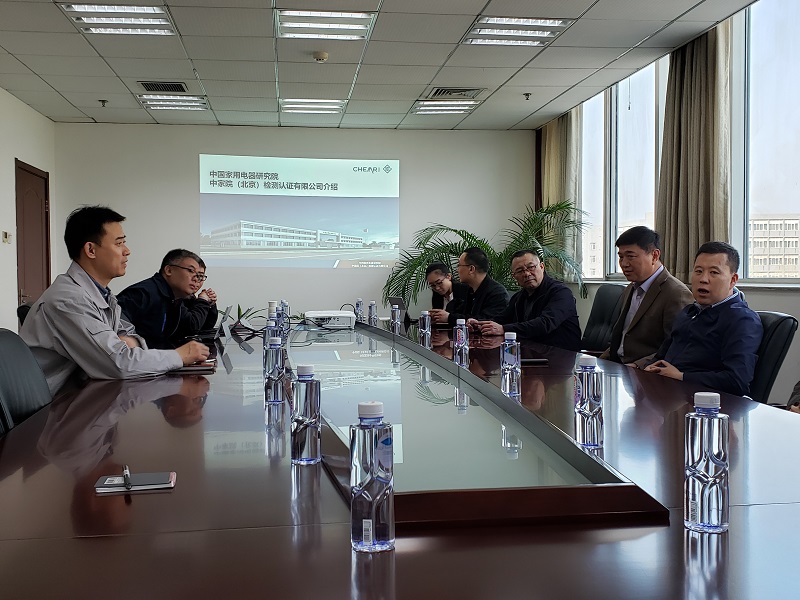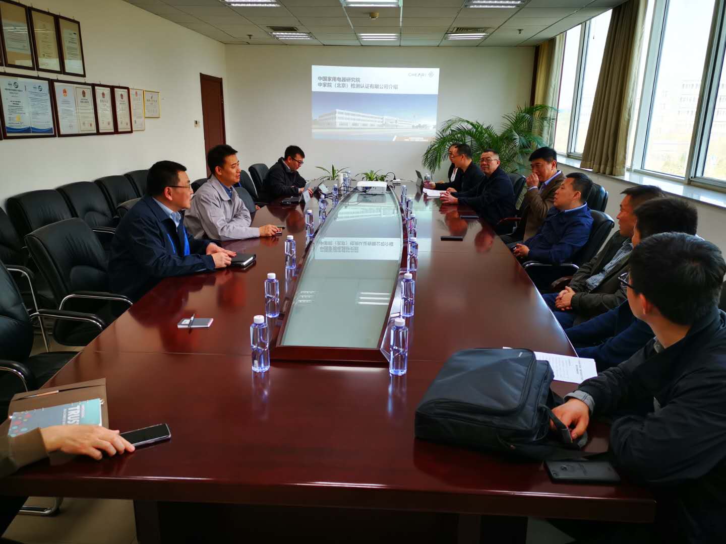 2019年4月3日,新疆维吾尔自治区市场监督管理局党组成员、副局长王军带队,与新疆维吾尔自治区电气化办、住建厅代表等来到我院亦庄办公区开展调研工作。中国家用电器研究院副院长、中家院(北京)检测认证有限公司总经理曲宗峰全程陪同了此次调研,双方就生活电器尤其是电采暖炉等煤改电涉及产品质量状况进行了座谈。