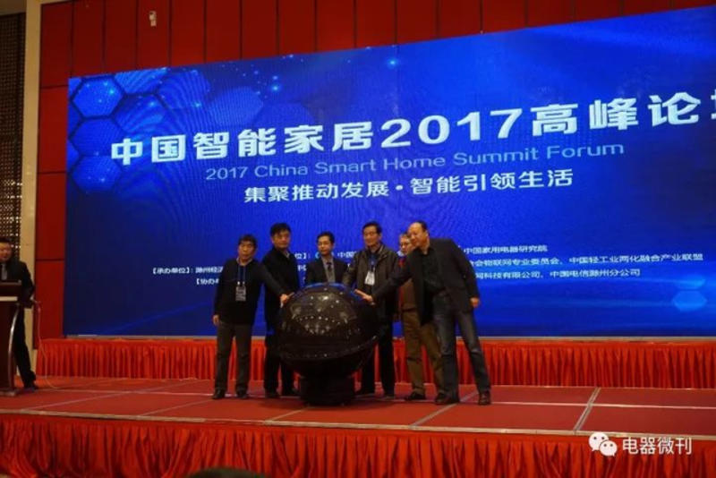 2017年11月22 - 23日, 由中国轻工业联合会、中国家用电器研究院联合主办 的 “ 中国智能家居 2 017 高峰论坛 ” 在滁州 举行。中国轻工业联合会副秘书长郭永新、工业和信息化部消费品工业司副处长肖杜宇、 滁州市副市长杨东坡、滁州经济技术开发区管委会主任盛必龙、中国家用电器研究院院长刘挺 等出席论坛。