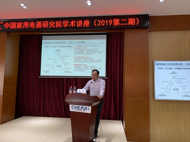 2019年4月22日下午,中国家用电器研究院2019年第二期学术讲座隆重召开。本次讲座邀请了中国信息通信研究院技术与标准研究所副总工程师罗松,以“5G构筑新生活和新社会,ICT技术拓展数字经济发展新空间”为主题进行了介绍和分享。来自中国家用电器研究院多个部门的90余名同事参加了本次讲座。